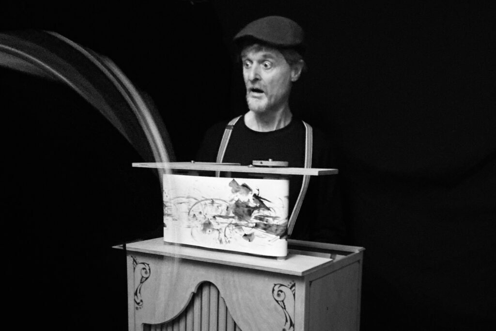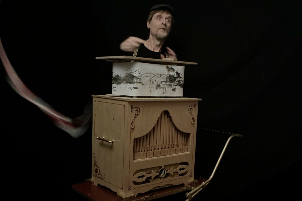 Images en mouvement, musique mécanique, rythme entraînant : le spectacle raconte une joyeuse catastrophe où le chaos devient jeu, où le désordre amuse, surprend et rassemble, dans une proximité directe avec le public. Dans l’Orguishibai, il n’y a pas de grandes scènes ni d’écrans lumineux. Il y a un orgue de barbarie, la musique et vingt mètres de dessins qui défilent, et racontent  l’histoire d’une mouche, qui n’en est pas une.